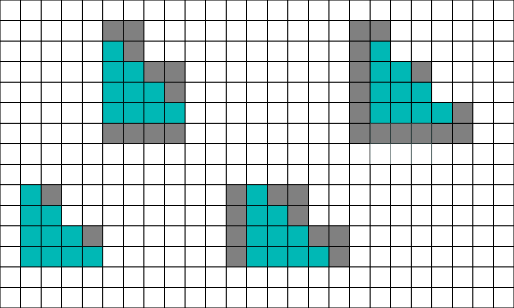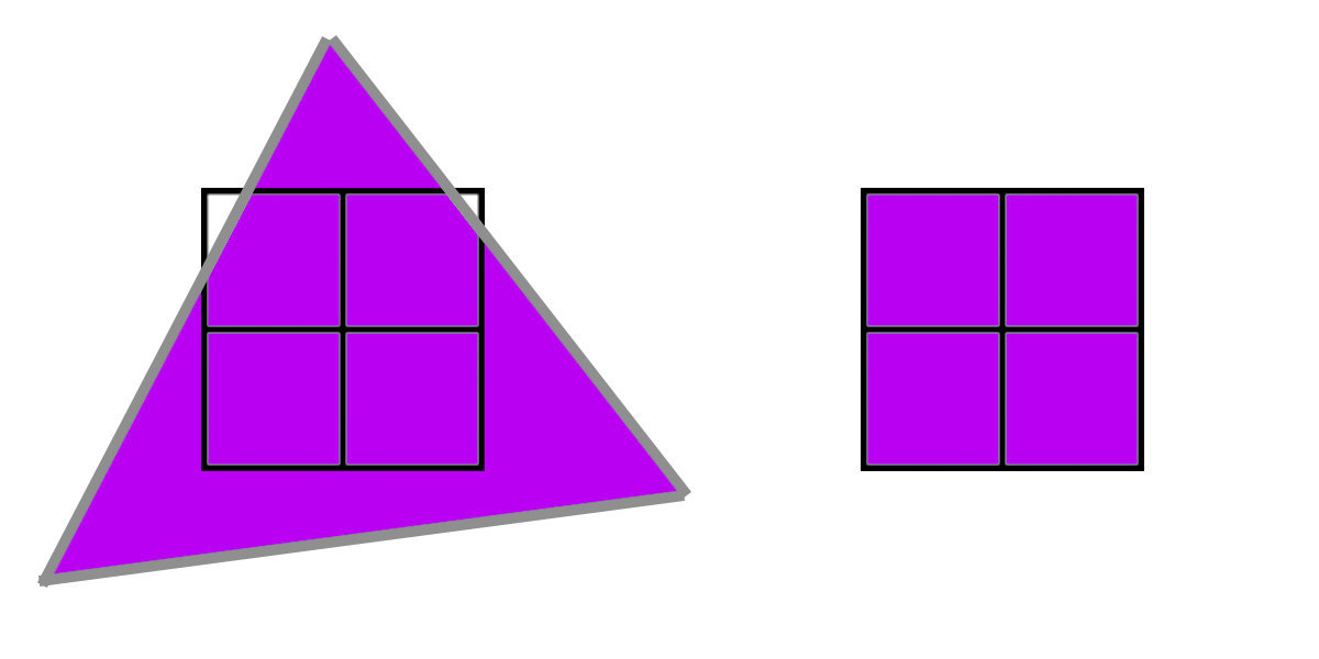 하지만 쿼드에 4개의 픽셀을 덮는 3개의 트라이앵글이 있는 경우 픽셀 셰이더 워크로드는 다음과 같습니다: