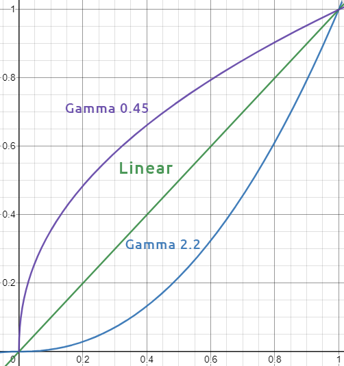 감마는 입력 값에 따라 이미지의 밝기가 어떻게 작동할지 정의하는 곡선이며, 우리 눈은 선형적으로 인식하지 않는다는 점을 기억해야 합니다.