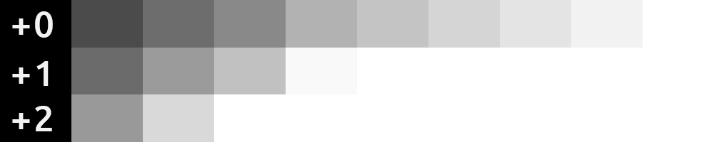 여기서 노출은 포토샵으로 보정할 때 선형이 아닙니다. 즉, 밝은 값은 훨씬 밝아지고 어두운 값은 조금 덜 어두워지지만 밝기 값이 클수록 효과는 커집니다. 그리고 노출 값이 높을수록 효과는 더 과장됩니다.