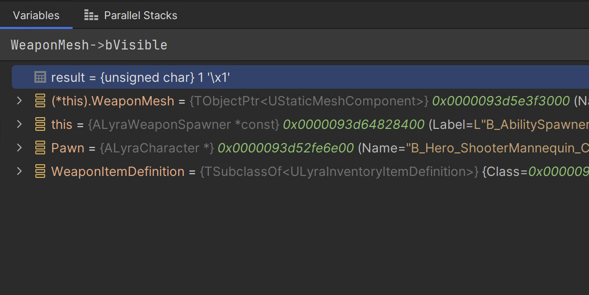 첫째, 이제 Rider는 STL 및 언리얼 스마트 포인터, 컬렉션 컨테이너, 스트링의 연산자를 올바르게 평가합니다. 즉, 언리얼 스마트 포인터 TSharedPtr 또는 TObjectPtr이 주어졌을 때 이제 화살표 연산자 -> 를 사용하여 기본 포인터의 멤버에 액세스하거나 * 연산자를 사용하여 오브젝트를 역참조할 수 있습니다. ! ,! = 및 == 연산자를 사용할 수도 있습니다.
