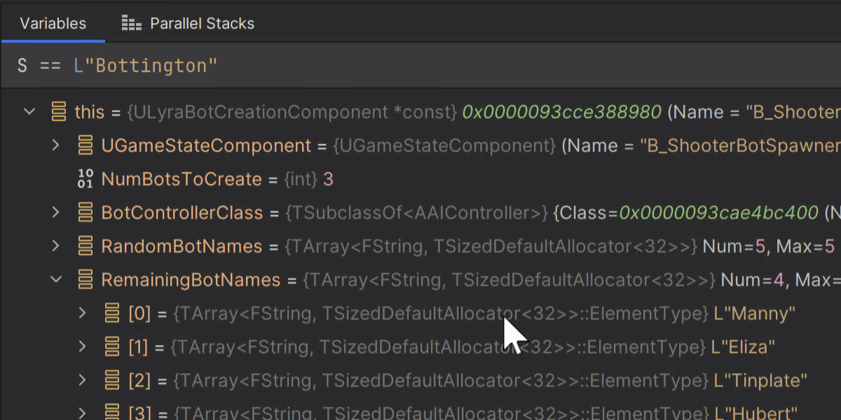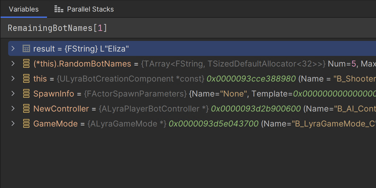 Rider 2024.2에는 네이티브 디버거가 대폭 개선되어 디버깅 중 네이티브 코드를 평가하는 경험이 크게 향상되었습니다. 성능 개선, 최적화된 코드 처리 개선, 스마트 포인터 및 스트링 유형에 대한 연산자 평가 지원 등이 있습니다. 이러한 변경 사항은 JetBrains Rider를 사용한 일상적인 언리얼 게임 디버깅에 큰 변화를 가져올 것입니다. 몇 가지 세부 사항을 살펴보겠습니다.