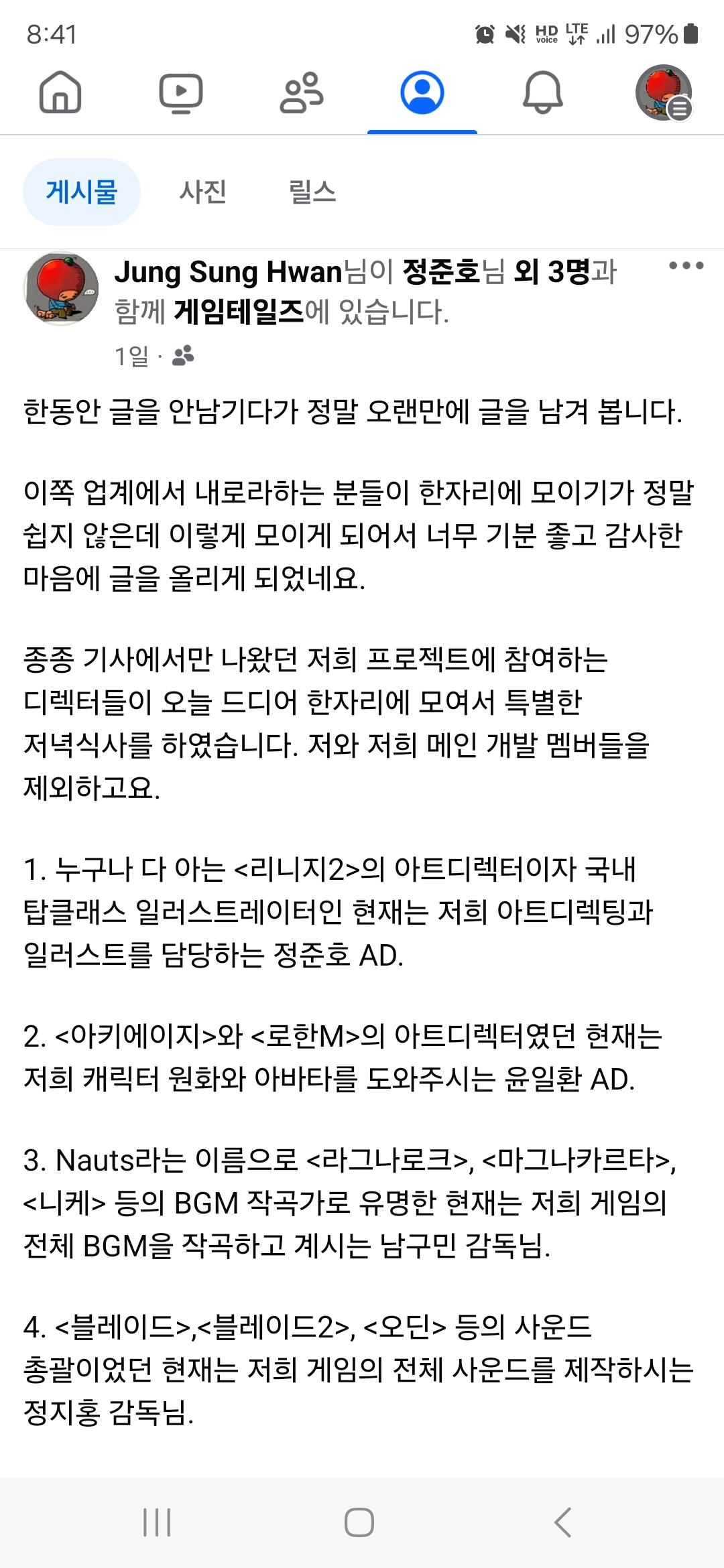 정성환 대표님 페이스북 포스팅.
