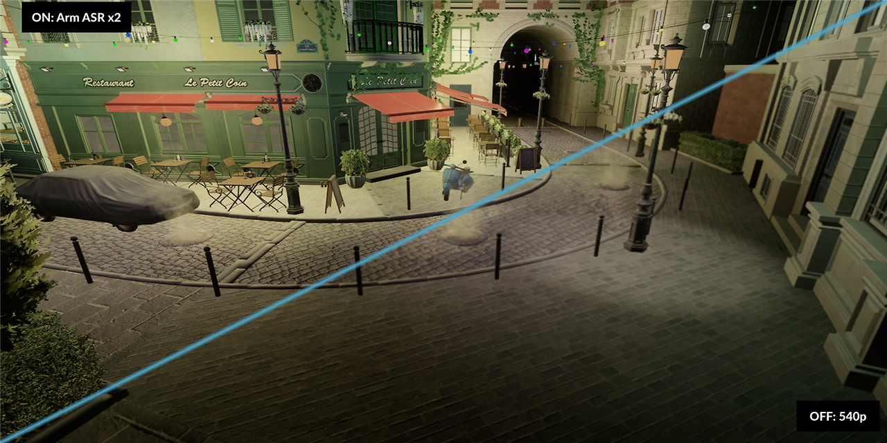 Arm 게임 콘텐츠 팀은 미래의 모바일 GPU에 도전하기 위한 언리얼 엔진 데모를 제작하기 위해 열심히 노력해 왔습니다. 이 콘텐츠에 Arm ASR을 적용할 수 있는 기회를 놓칠 수 없었습니다.