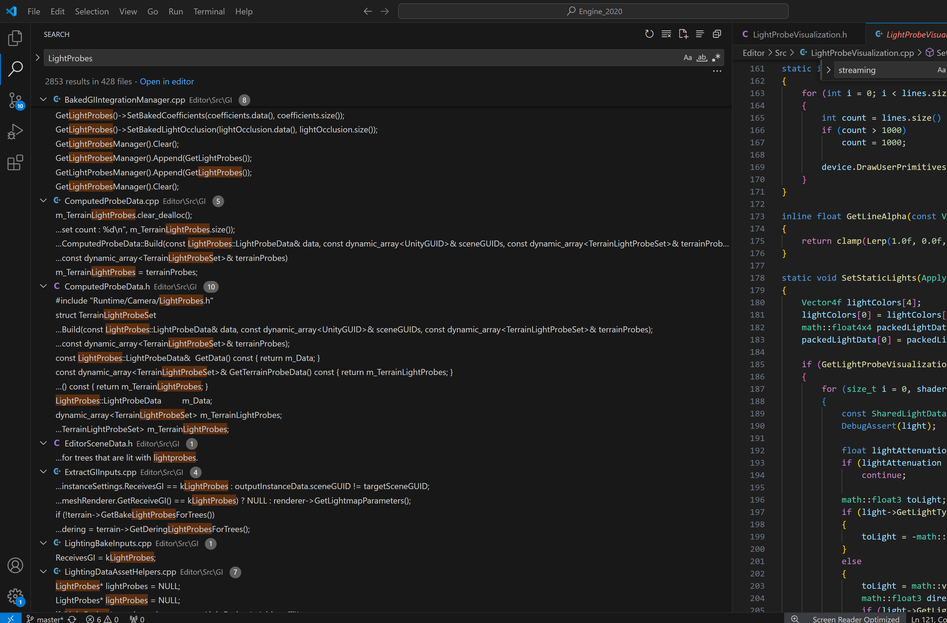 유니티 2020 엔진소스를 볼 수 있기 때문에 당시 소스코드를 보면 LightProbes 에 스트리밍 구현은 되어 있지 않았었네요.