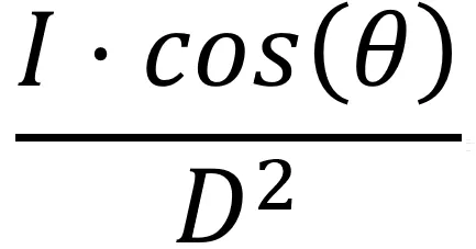 여러분이 만약 설치한 라이트들의 칸델라가 표면에서 얼마나 멀리 떨어져 있는지 알고 있다면 다음 방정식을 사용하여 표면의 조명 (럭스)을 계산할 수 있습니다.