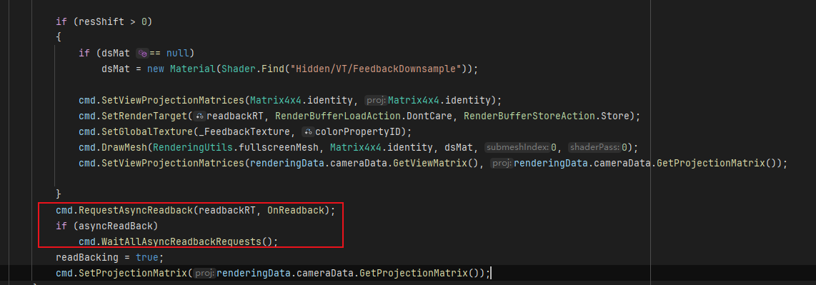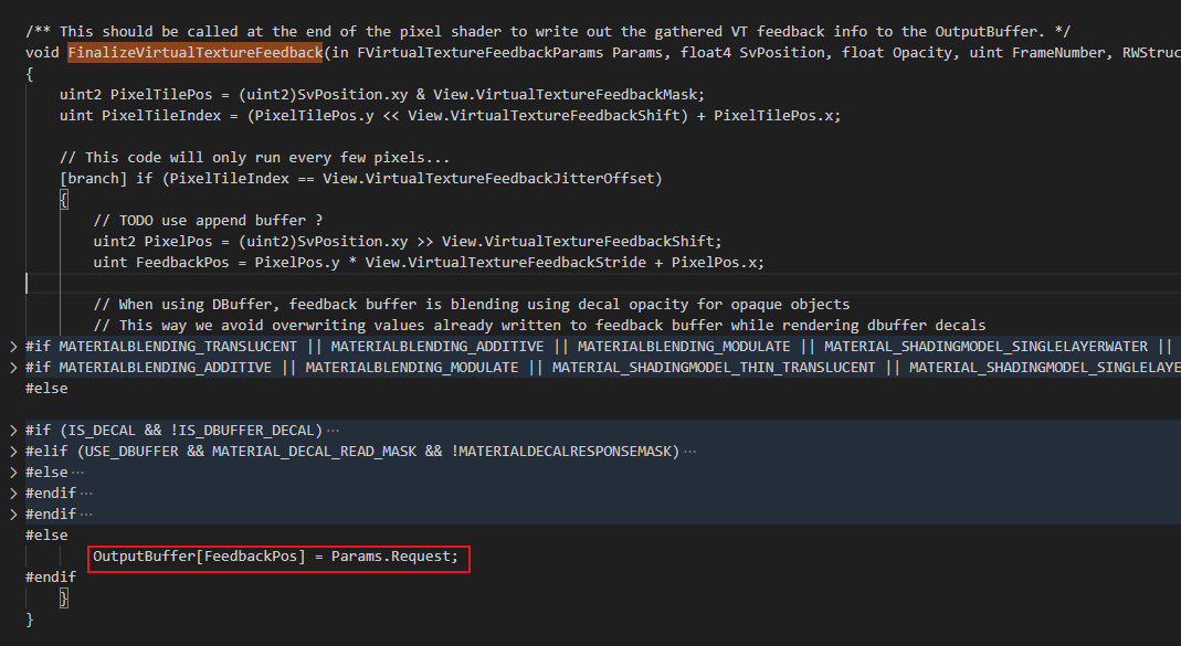 GPU 측면: 화면의 피드백 패스(출력 페이지 및 밉 정보)를 지정된 버퍼에 렌더링한 다음 비동기식 리드백으로 처리하기 위해 VTPage와 밉을 CPU로 전달합니다.일반적으로 리드백 속도를 높이기 위해 버퍼를 추가로 다운샘플링합니다.