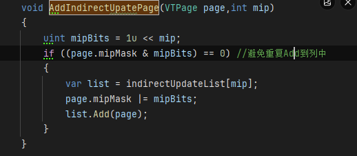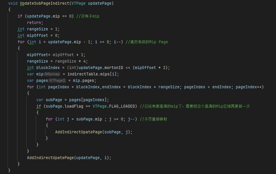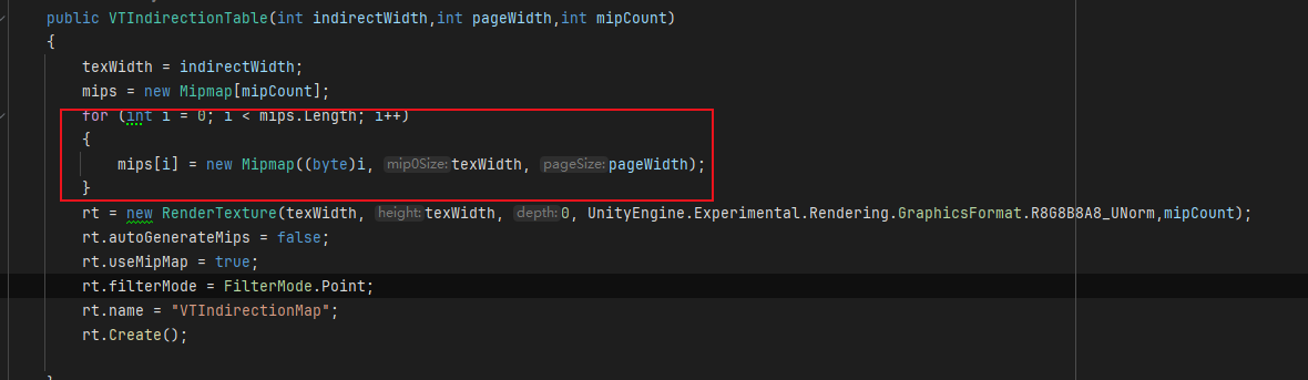 인디렉션 텍스처는 밉맵을 사용하므로 밉맵의 페이지 데이터도 초기화해야 합니다. 밉맵의 각 레벨에는 해당 해상도의 페이지가 있으며, 고급 밉일수록 페이지 수가 적고, VT의 면적이 클수록 하나의 페이지에 해당합니다.