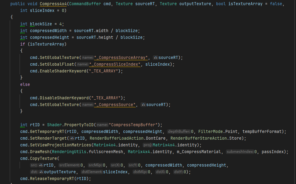 이 글에서는 UE 소스 코드에서 ETCCompressionCommon.ush와 BCCompressionCommon.ush를 사용한 다음 PS를 사용하여 압축합니다.형식은 Uint여야 한다는 점에 유의해야 합니다.