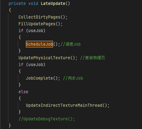 Job 업데이트에서 동시에 피지컬 텍스처 업데이트를 시작하고, 피지컬 텍스처 업데이트 단계와 RVT 부분을 병행할 수 있으며, 더 이상 세부 사항은 없습니다.피지컬 텍스처 업데이트가 완료되면 잡의 데이터를 동기화하여 TextureArray를 채울 수 있습니다.