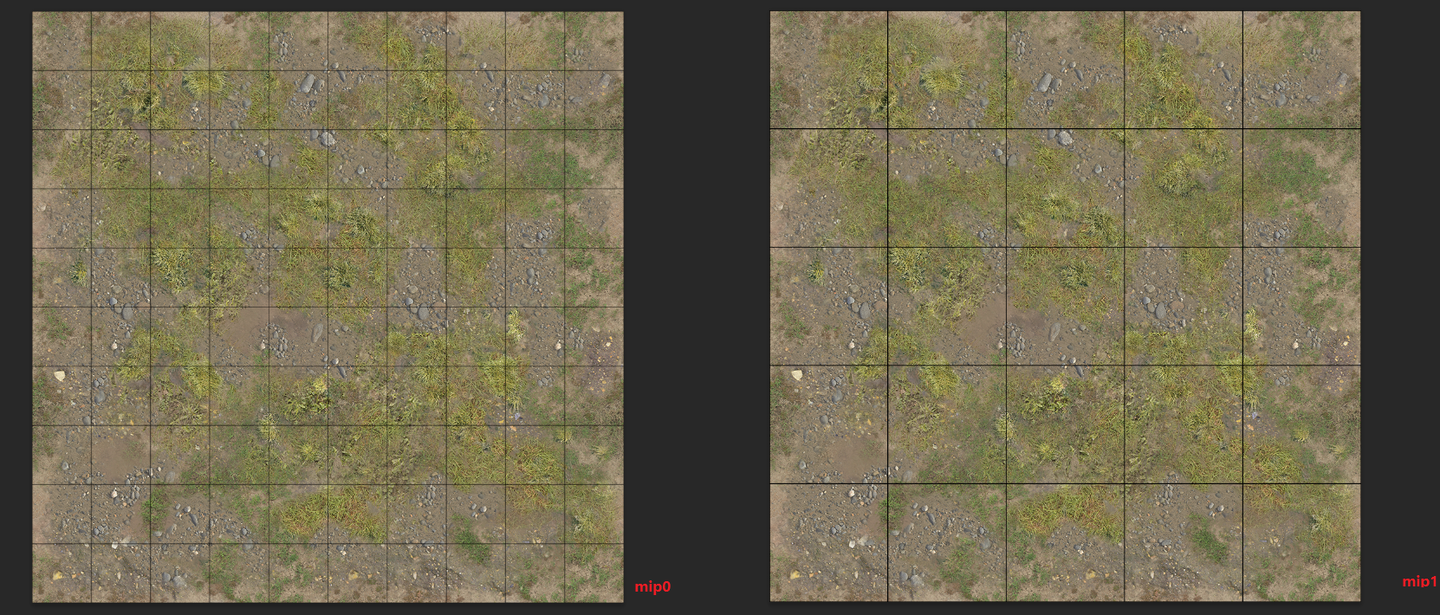 단일 페이지 Mip0: 128*128, Mip1: 256*256。