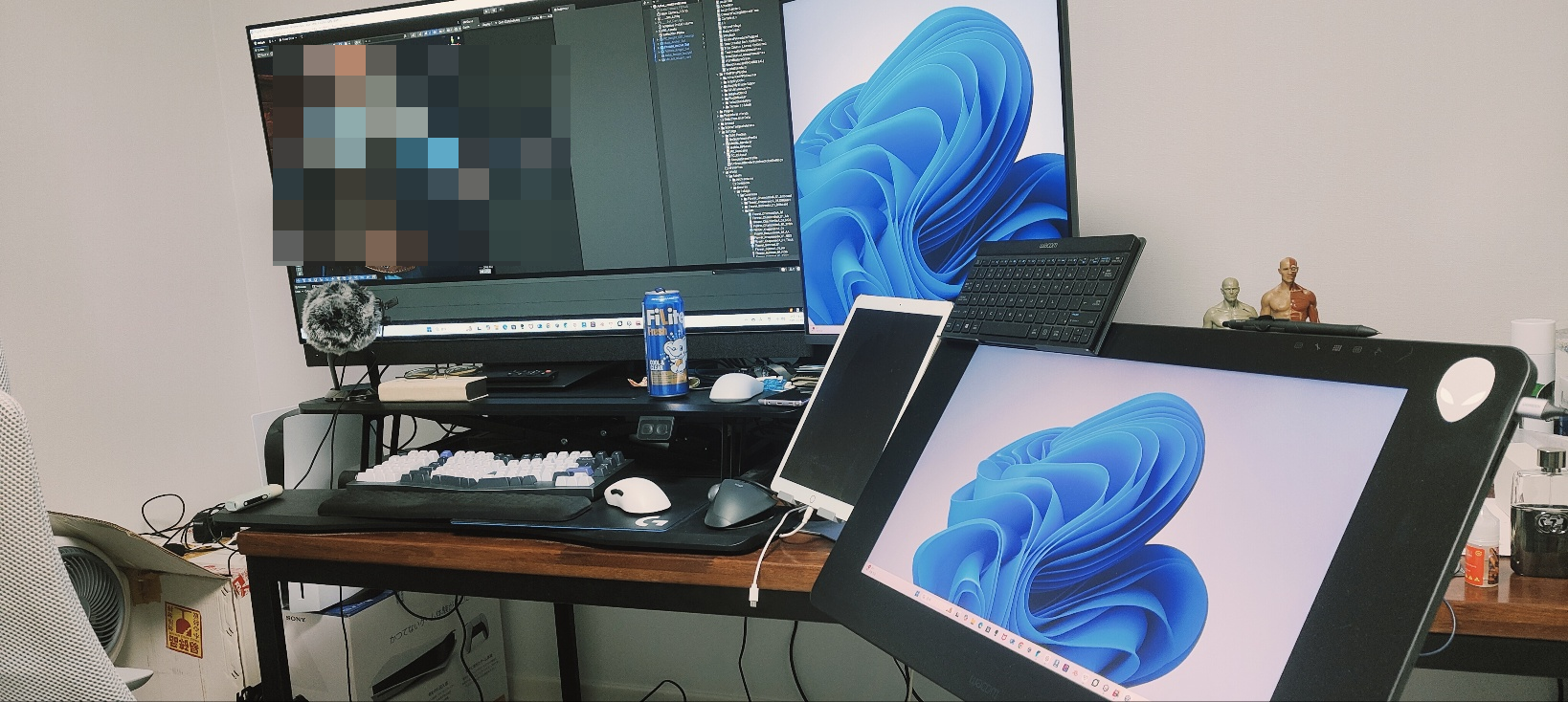 전동식 높이 조절 스텐드 위에 그냥 설치 했기 때문에 좀 높은 감이 없지않다. 당분간은 이대로 쓸 것 같다.LCD 모니터에 비해 밝기가 좀 약한 편이지만 설정에 들어가서 몇 가지 셋팅을 하면 작업 하는데 큰 지장이 없는 수준이다.밝기는 450 정도라 높은 편이 아니지만 작업용으로 충분하다. 윈도우 색상 테마는 꼭 다크모드 쓰는걸 추천한다. OLED 패널 보호를 위해 화면에 흰색 비율이 많으면 자동으로 약간 어두워지는 기능이 동작하는데 픽셀 버닝을 예방하는것이니 신경 쓰지 말자.( 설정에서 끌 수 없음)