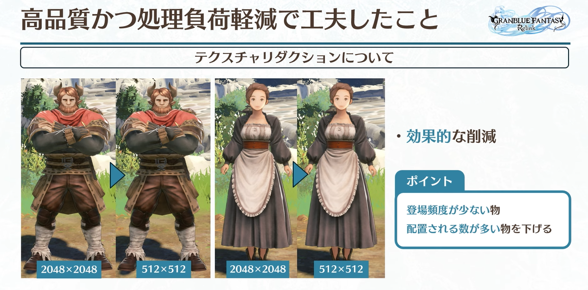 그랑블루의 세계관에서는 마을에 NPC가 많기 때문에 등장 횟수가 적고 중요하지 않은 NPC와 등장 횟수가 많은 NPC의 해상도를 낮췄습니다.