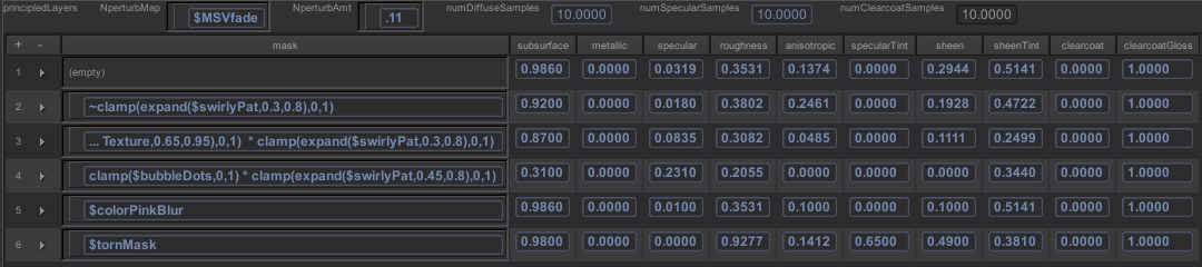 - 일반 표면의 경우 Disney BSDF는 Disney BRDF를 기반으로 총 12 개의 매개 변수 인 specTrans (정반 투명도)와 scatterDistance (산란 거리)를 추가합니다.