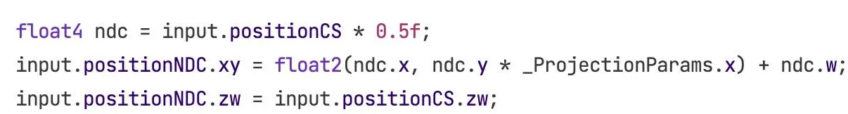 NDCSpace.xy / NDCSpace.w //[0, 1] 사이의 xy 화면 좌표를 가져옵니다.