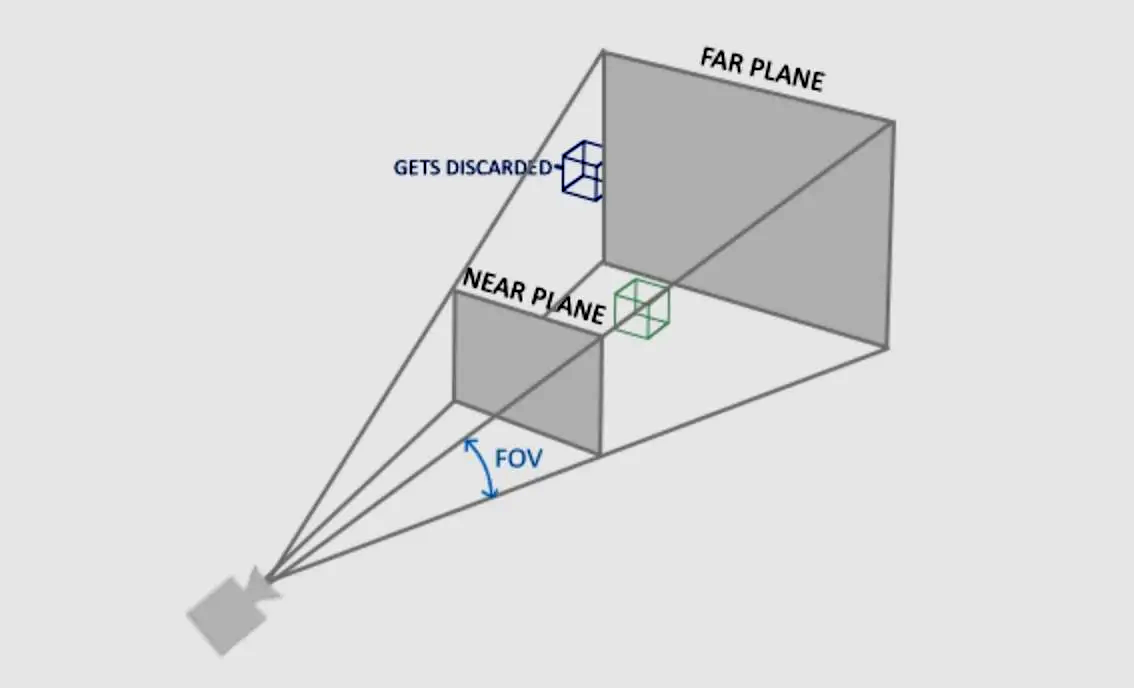 이 공간이 정확히 무엇인지 많은 사람들이 혼란스러워하는데, 실제로는 카메라의 절두체 공간으로, 근평면(Near Plane)과 원평면(Far Plane) 사이의 영역을 의미합니다.