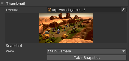 썸네일 섹션은 새 씬 대화상자에 표시되는 미리보기 이미지를 만들기 위한 옵션을 제공한다.