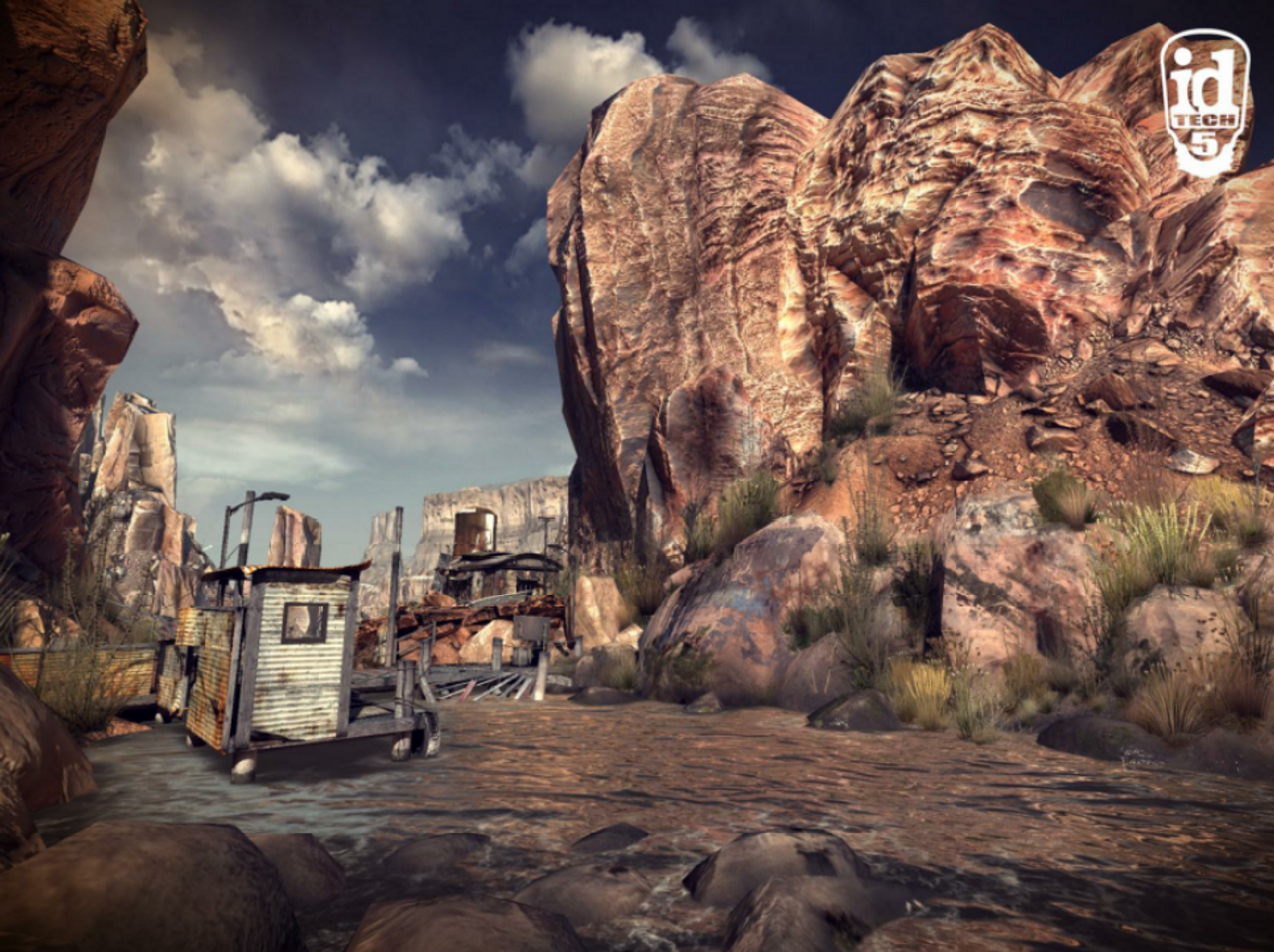 Rage는 일반적인 범위와 성능 뿐만 아니라 유니크한 텍스처링을 위한 소규모 텍스처도 가상화한다는 점에서 텍스처 가상화에서의 중요한 발전입니다. 각 지오메트리에 고유한 텍스처를 사용하려는 야심찬 목표 때문에 매 프레임마다 스트리밍해야 하는 타일의 양이 방대하여 게임의 부자연스러운 시작에 일부분의 책임이 있습니다. 그러나 id Software가 이를 대화형 프레임 속도와 전반적으로 인상적인 품질로 구현했다는 것은 더욱 놀라움을 주었습니다(그림 5 참조). 그러나 이를 통해 모든 텍스처를 동일하게 처리할 수 있게 된다는 것은 Rage에서 최근 게임들과 비교하여 작은 객체의 보수적인 텍스처매핑과 비교했을 때 시각적 품질이 크게 향상되지 않는다는 것을 의미합니다. 반면, 매우 높은 세부도와 비교하여 다중 텍스처링 방식에 비해 높은 세부도를 가지는 지형 텍스처에 대한 텍스처 가상화의 이점은 의심의 여지가 없습니다.
