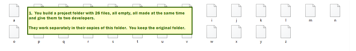 It's easy to imagine a project folder with several files in it. Now imagine that you did work in the folder on two different days and saved it in two different Git branches. Or imagine a team, where you started the folder, copied it to two teamates, and th