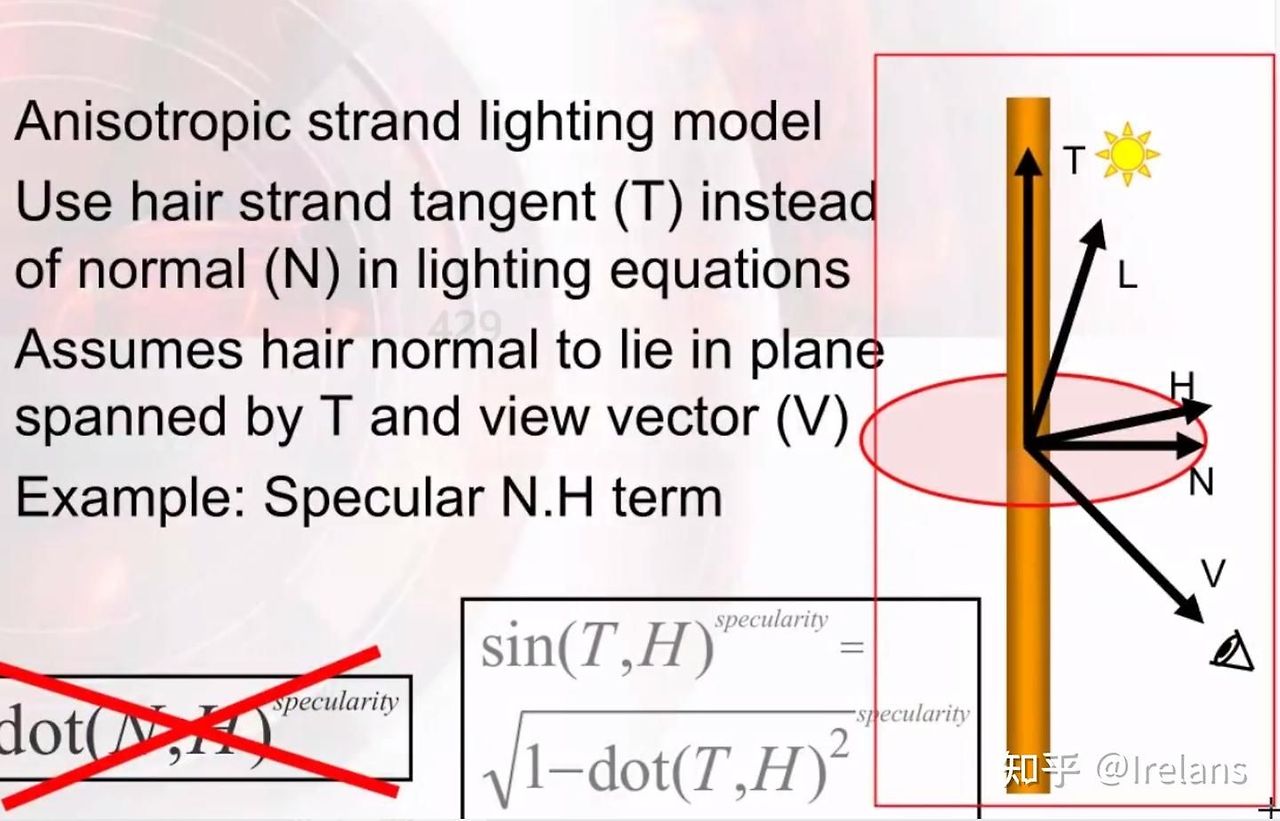 헤어의 이방성 하이라이트에 대한 공식 설명 시연