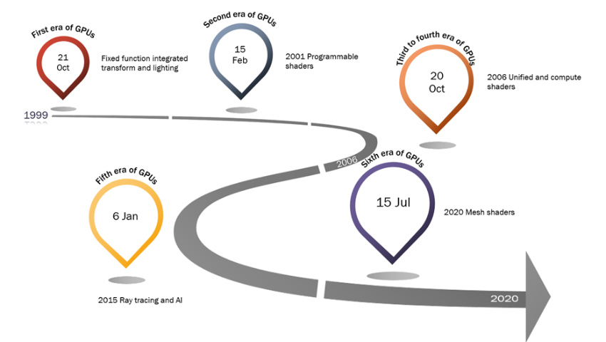 Discover the evolution of GPUs through six groundbreaking eras, from graphics accelerators to universal compute engines. Explore how APIs and rapid advancements have transformed computational capabilities beyond Moore's Law.