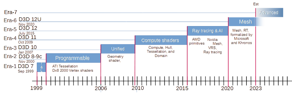 DirectX 12는 레이 트레이싱으로 확장되었으며, DirectX 12 Ultimate의 메시 셰이더는 GPU를 그래픽스를 위한 진정한 컴퓨팅 플랫폼으로 확립했습니다.