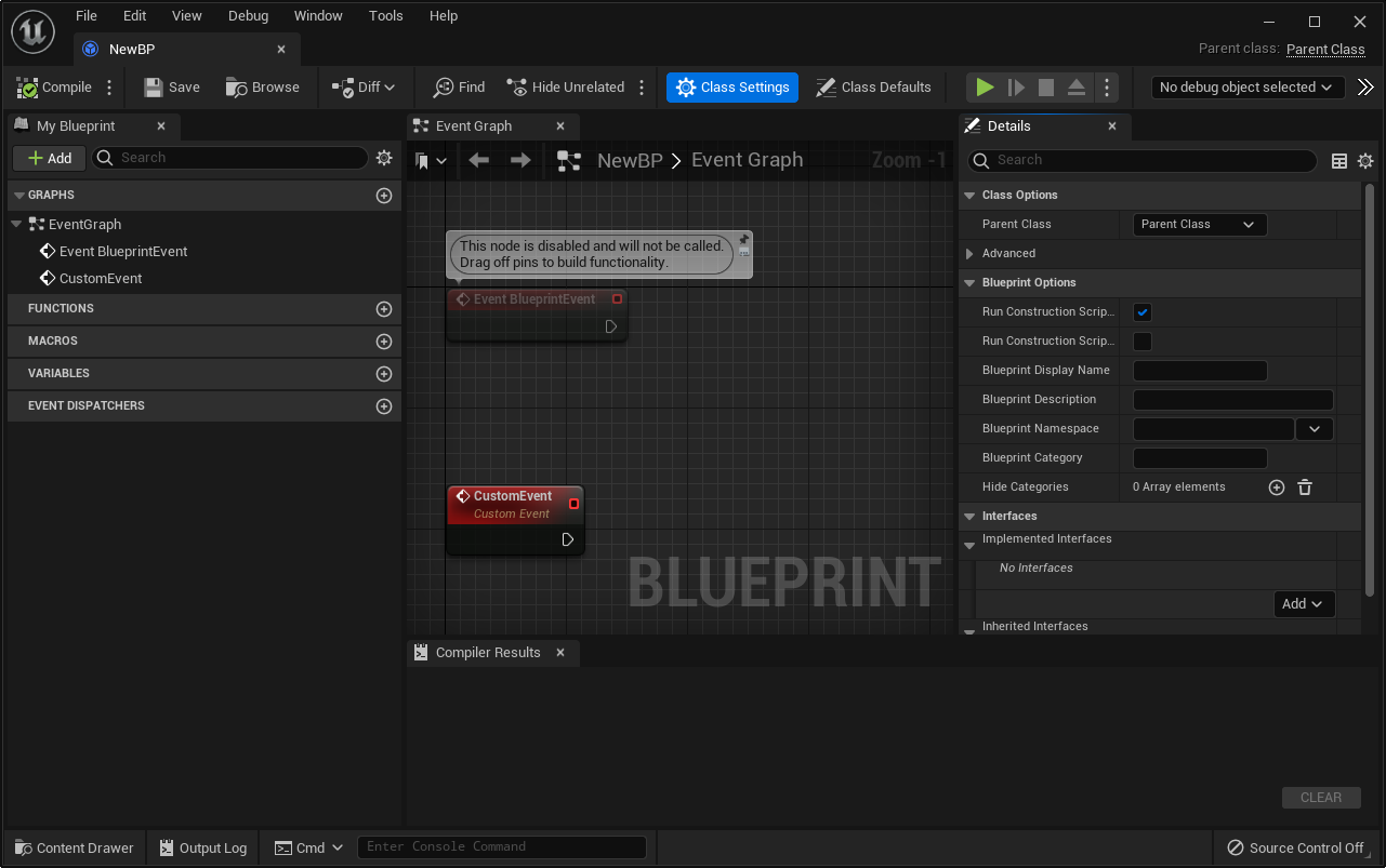 FKismetEditorUtilities::AddDefaultEventNode(NewBP, NewBP->UbergraphPages[0], "CustomEvent", ParentClass, NodePositionY);