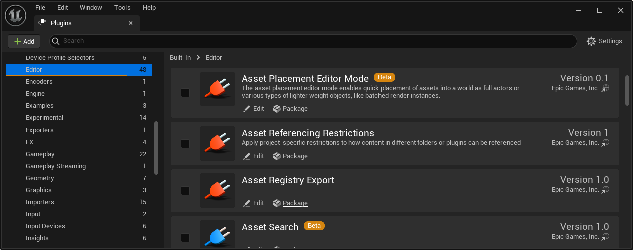 엔진에서 내장 플러그인을 활성화하면, 에디터가 자동으로 *.uproject 파일의 Plugins 섹션에 새로운 플러그인 항목을 추가합니다:
