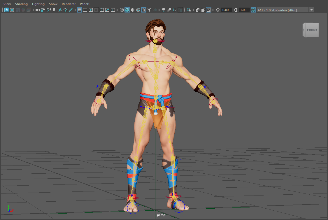 A 포즈를 하고 있는 예제를 사용하고 싶지 않아서 다른 포즈를 취하고 싶어가지고 간단히 마야 에서 리그 셋업을 했습니다. 마야의 오토 리그는 휴먼IK 와 적절하게 잘 연동이 되기 때문에 오랫만에 사용해 봤습니다.