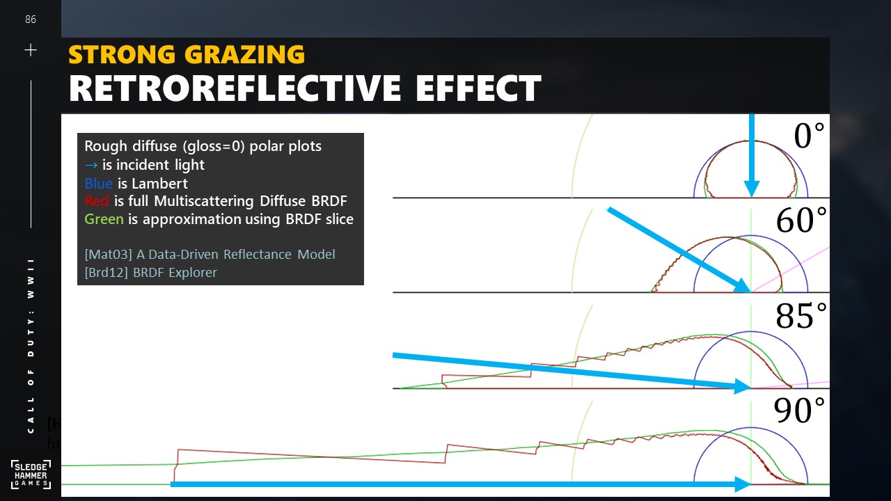 많은 논문에서 거친 표면에서 확산 조명이 평평해지는 것을 보여줍니다.