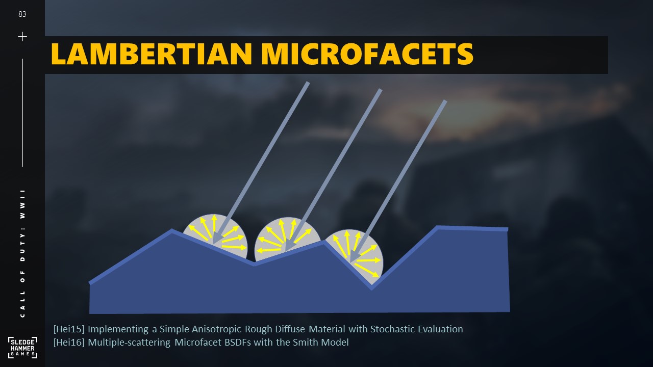 램버시안 마이크로패싯은 확산 모델과 정반사 모델 간에 일관된 물리적 표현을 유지한다는 점에서 흥미롭게 들렸습니다.