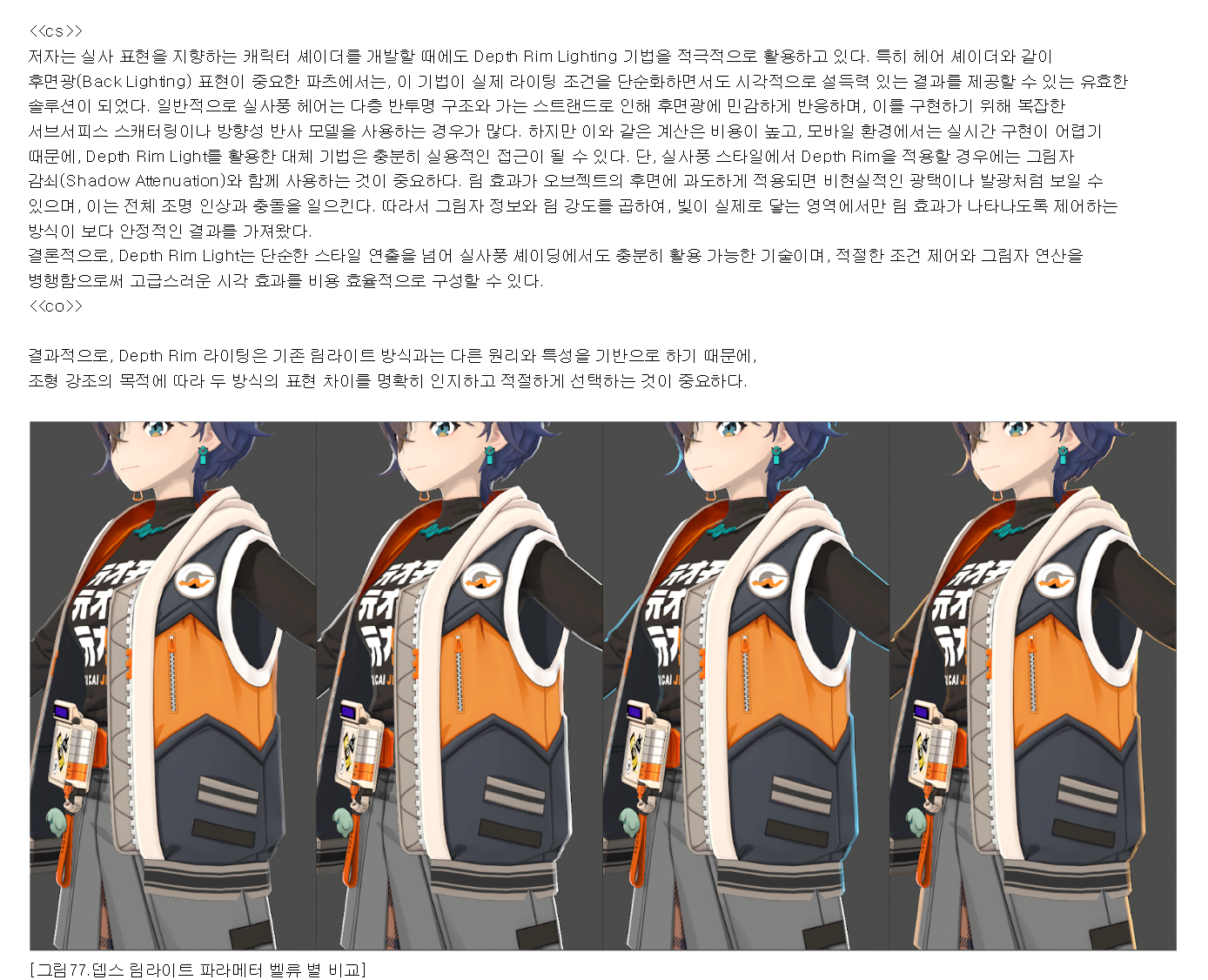 9장 10절에서는 뎁스 기반 림라이팅 구현을 원리부터 결과까지 친절하게 설명하고 있습니다.