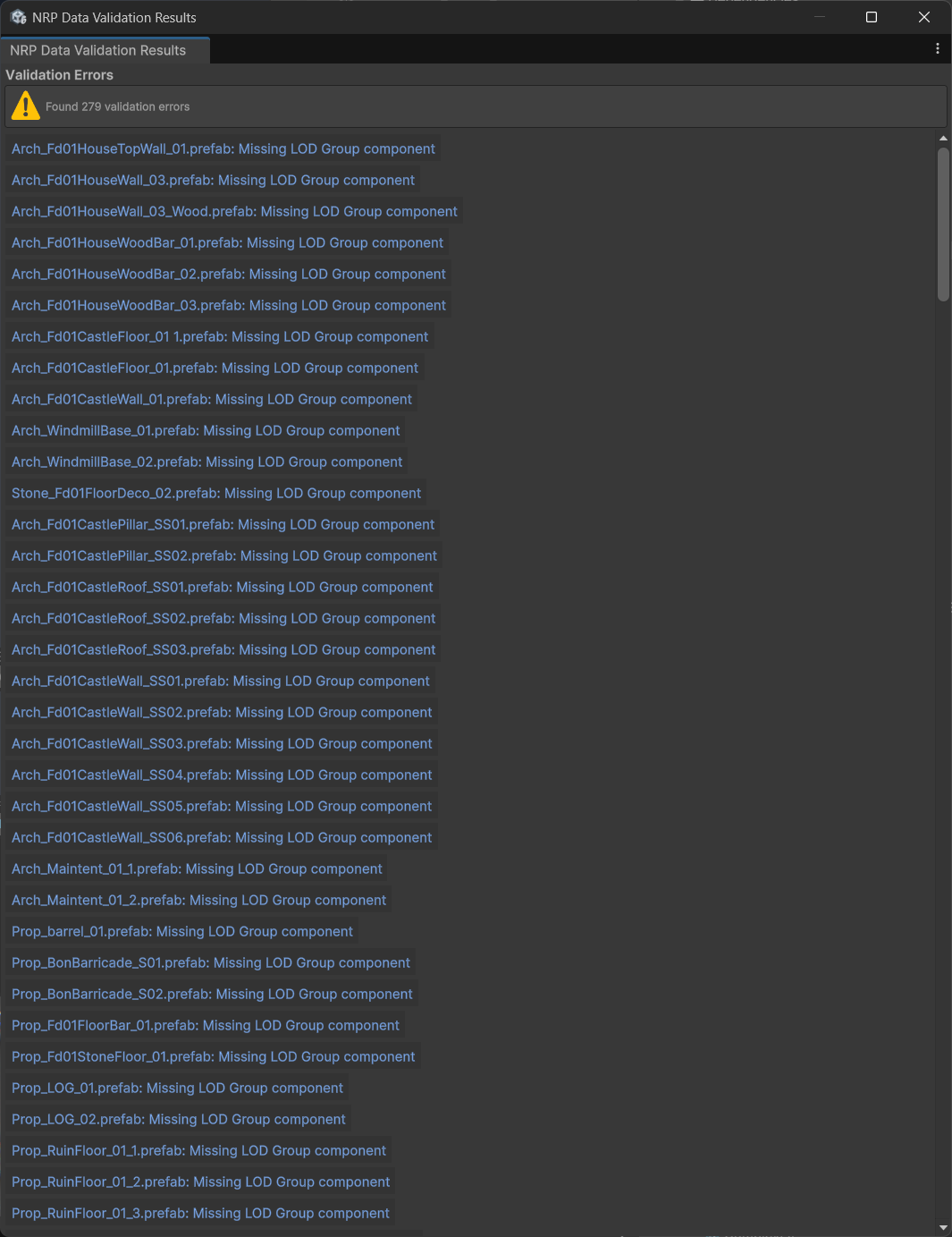 사용 되는 어셋의 LOD 그룹 규칙을 검증하는 Validation 툴.