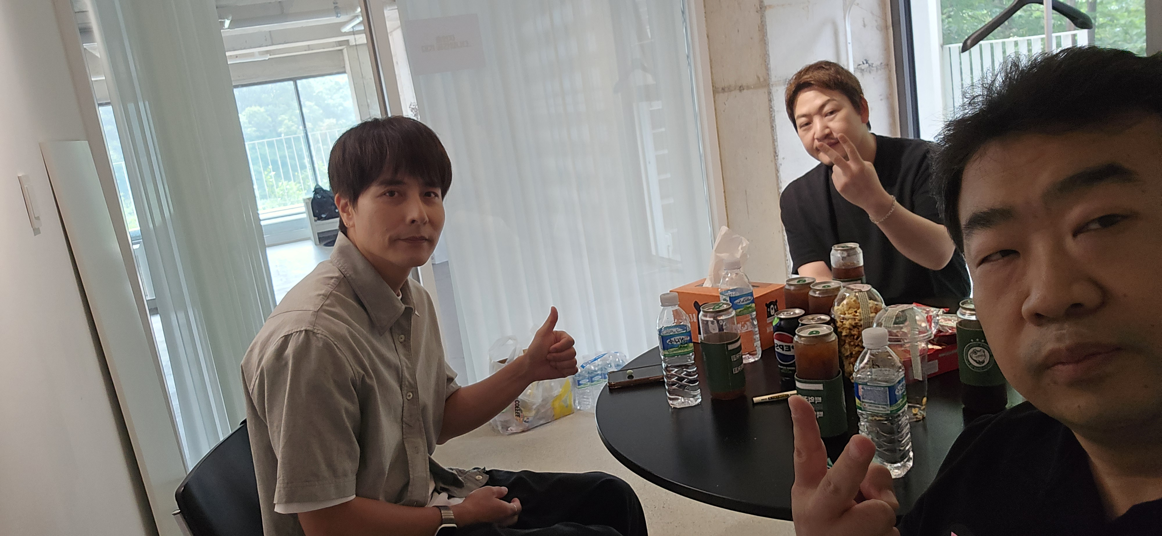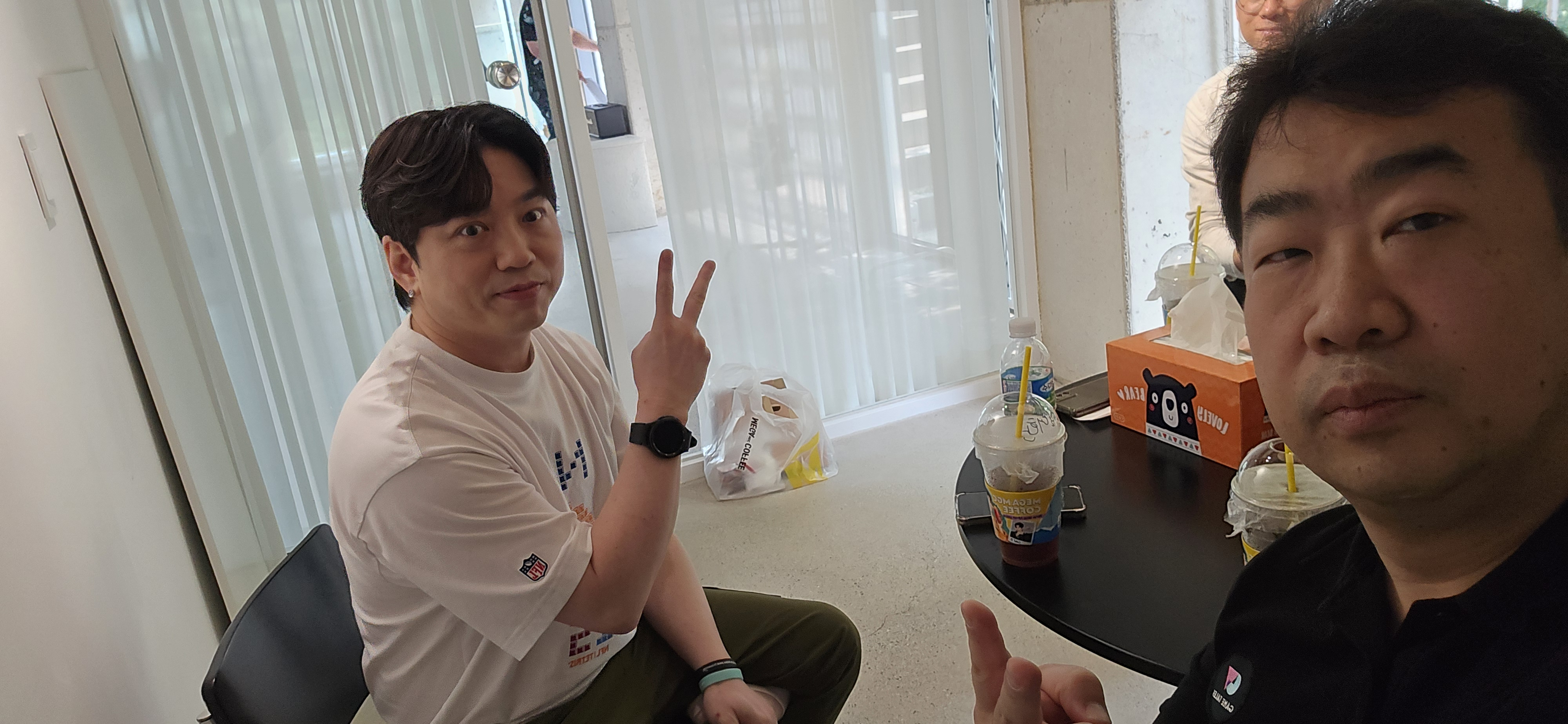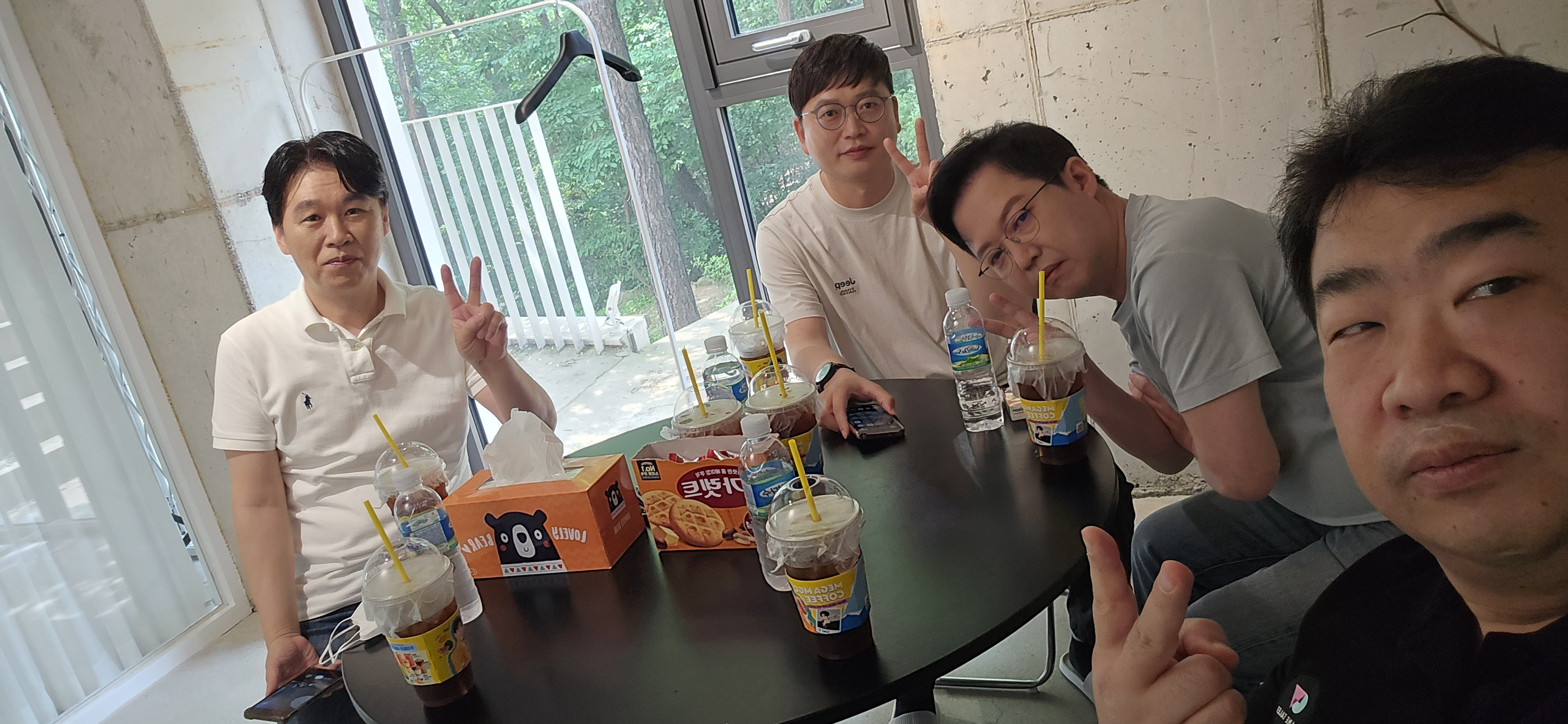 김대환 TD. 아침에 보면 전날 뭐 했는지 얼굴에 딱 써 있는 스텐스를 1년 반 넘게 보여준다. 젊어서 ? 그런지 잠을 안잔다. 그러다 훅 갈텐데... 걱정. 이번 사진에서는 정성환 대표님이 시선강탈을 50%만 했다. 다행이다.