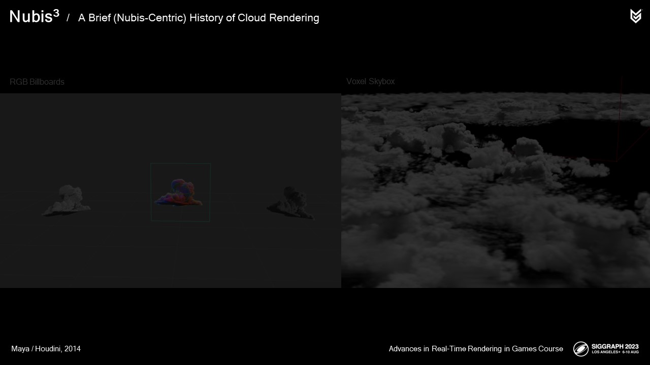 오늘은 클라우드 렌더링 방법 중 두 가지를 중점적으로 살펴보려고 하는데, 두 가지 방법 모두 복셀 기반 클라우드에 대한 접근 방식에 직접적인 영향을 미쳤기 때문입니다: