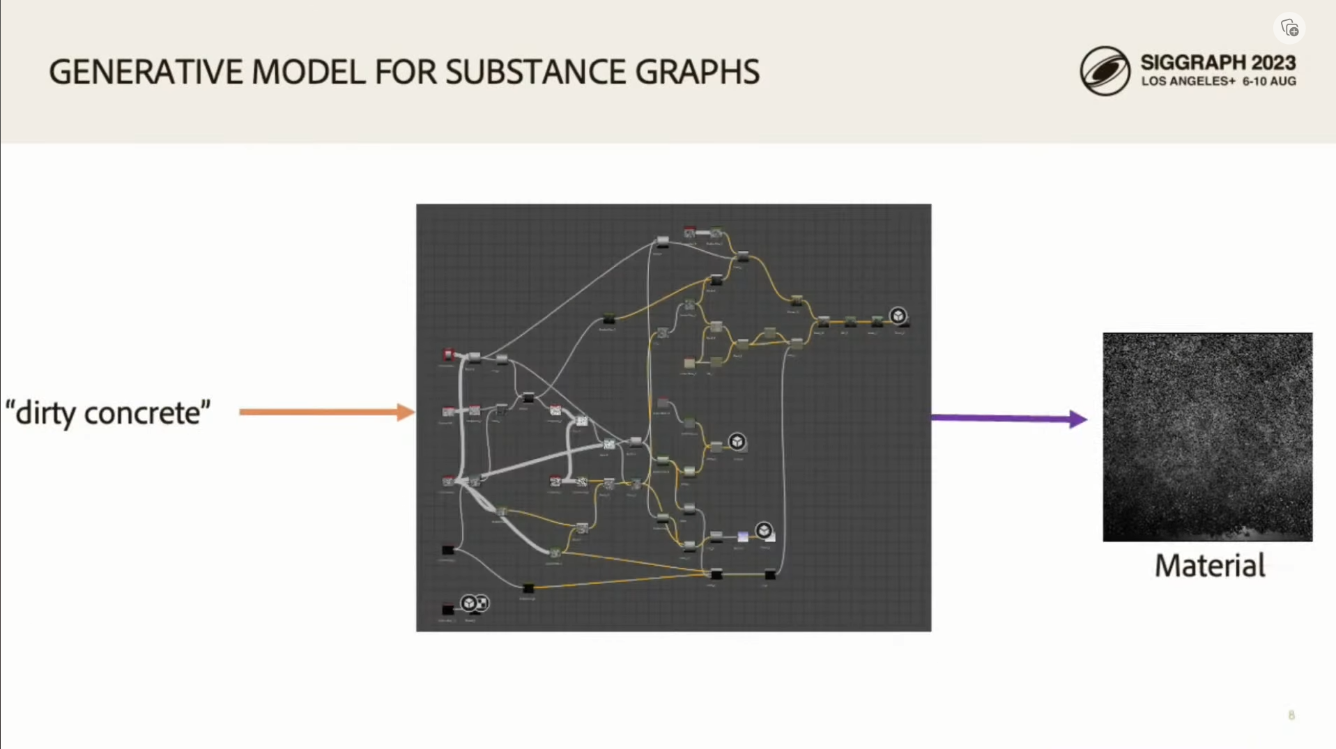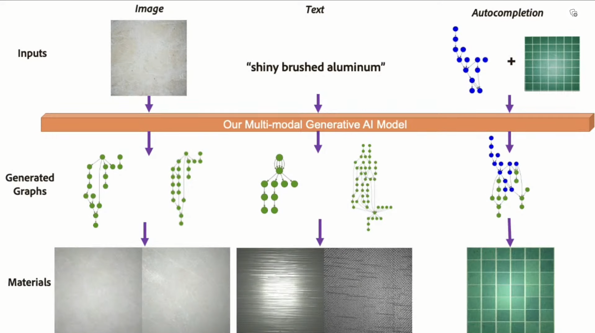 노드 그래프 시스템은 컴퓨터 그래픽에서 재료 설계를 위해 어디에나 사용됩니다. 코드를 작성하지 않고도 시각적 프로그래밍을 사용하여 원하는 효과를 얻을 수 있습니다. 고급 설계 도구로서 편리성과 유연성을 제공하지만 노드 그래프 생성을 마스터하려면 일반적으로 전문 교육이 필요합니다. 우리는 다양한 유형의 프롬프트에서 여러 노드 그래프를 생성할 수 있는 알고리듬을 제안하여 사용자가 특정 설계 공간을 탐색할 수 있는 기준을 크게 낮춥니다. 이전 작업 [Guerrero et al. 2022]은 무작위 노드 그래프를 무조건 생성하는 것으로 제한되어 구상 재료를 생성하는 것을 어렵게 했습니다. CLIP 기반 인코더를 사용하여 다양한 입력(텍스트 또는 이미지 프롬프트)에 따라 조정할 수 있는 고품질 절차 재료 합성을 위한 다중 모드 노드 그래프 생성 신경 아키텍처를 제안합니다. 또한 생성 품질을 향상시키는 데 핵심인 실질적으로 증강된 재료 그래프 데이터 세트를 생성합니다. 마지막으로 정규화된 샘플링 프로세스를 사용하여 고품질 그래프 샘플을 생성하고 최상위 샘플에 대해 차별화 가능한 최적화를 통해 일치 품질을 향상시킵니다. 우리는 우리의 방법을 CLIP 기반 데이터베이스 검색 기준선(그 자체로 새로운)과 비교하여 대규모 데이터 스토리지 없이 우수하거나 유사한 성능을 달성합니다. 또한 모델이 이미지, 텍스트 프롬프트 또는 부분 그래프에 따라 무조건 재료 그래프 세트를 생성하여 자동 시각적 프로그래밍 완료를 위한 도구 역할을 할 수 있음을 보여줍니다.