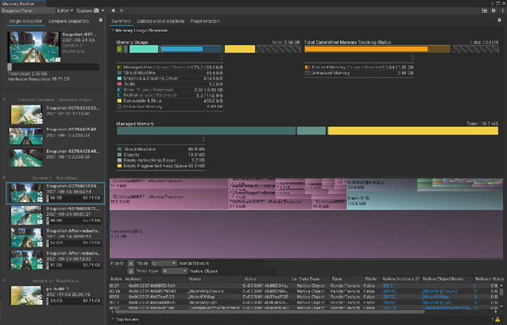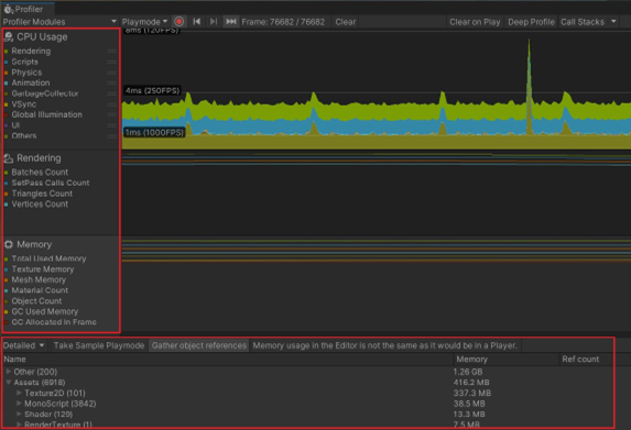 마지막으로 메모리 프로파일링에 대해 알아봅니다. 이는 런타임 성능과 크게 관련이 없지만 게임 충돌을 방지할 수 있기 때문에 알아두는 것이 중요합니다.