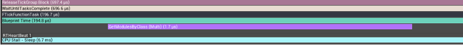 C++ 게임 코드에서는 자체 상태 추적을 추가하여 추가적인 프로파일링 세부 정보를 포함하는 것이 가치 있을 수 있습니다. 기본적으로 블루프린트 함수는 "Blueprint Time"으로만 표시되지만, 사용자 정의 프로파일링을 추가하면 블루프린트가 C++ 게임 코드를 호출하는 경우 이 시간이 어떻게 소비되는지에 대한 더 많은 세부 정보가 추가됩니다. 이는 비교적 간단하며, 자세한 내용은 아래 블로그 게시물을 참조하세요.