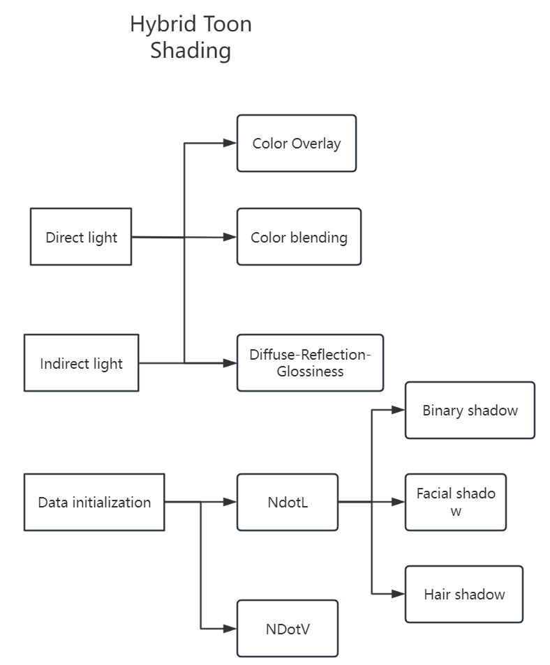 간단히 말해서, 하이브리드 툰 셰이딩은 PBR 과정에 NPR의 특성을 삽입하고 적절하게 조정하는 것입니다 [17].