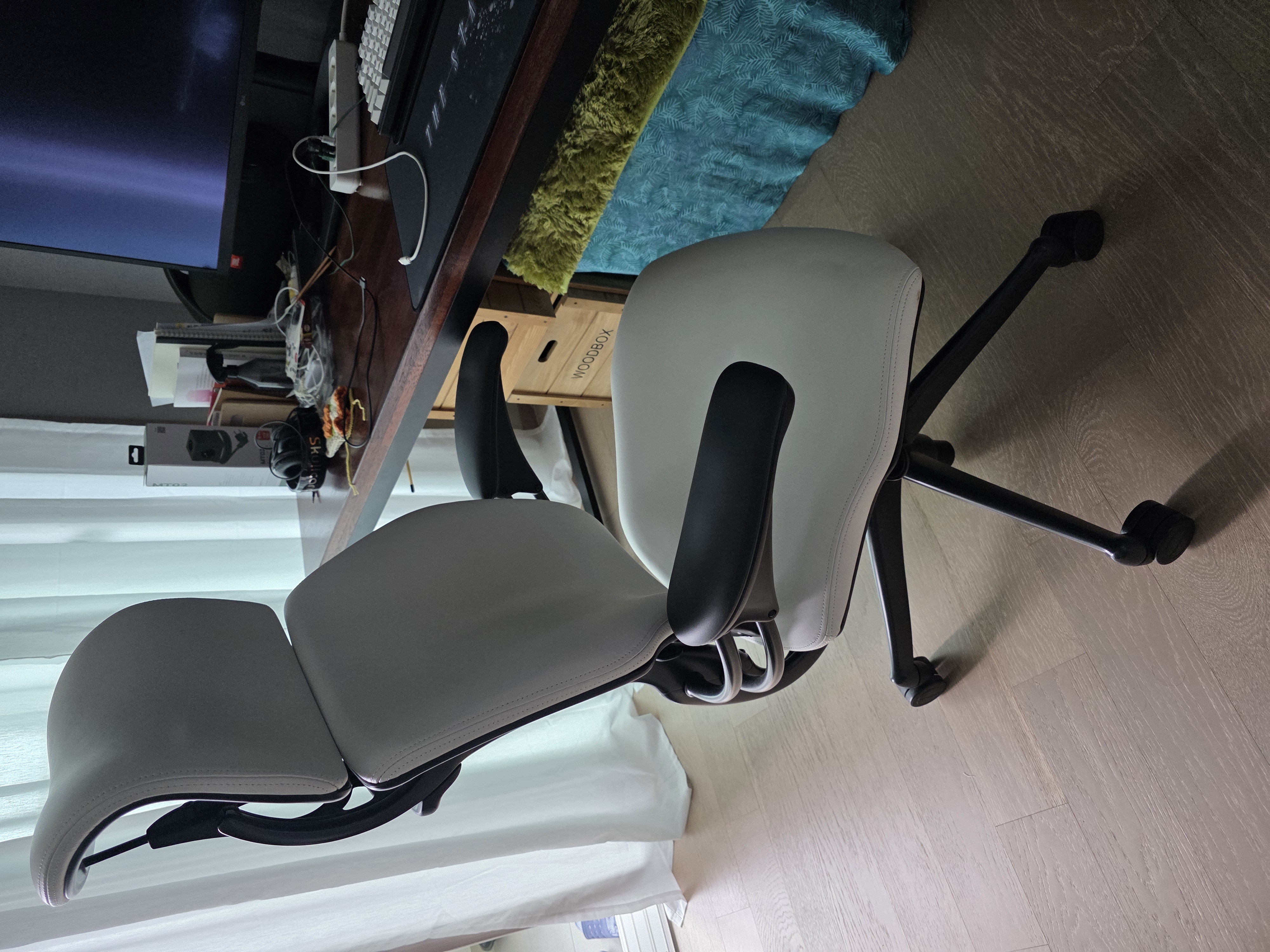 의자에 진심이라 휴먼스케일 프리덤 천역 가죽 버전과 페브릭 버전도 샀었는데 몸에 열이 많은 나에게는 하워스 펀이 더 적합했고 휴먼스케일 프리덤 2개 모두 와이프 차지가 되버렸다. 개인적으로 인체공학적으로 최고는 휴먼스케일 프리덤이라는 생각은 변하지 않는다. 특히 적응형 헤드레스트는 정말 저세상 퀄리티이고 허리가 정말 아프지않다. 등에 열감을 잘 느끼는 분에게는 비추지만 와이프는 최고라고 한다.