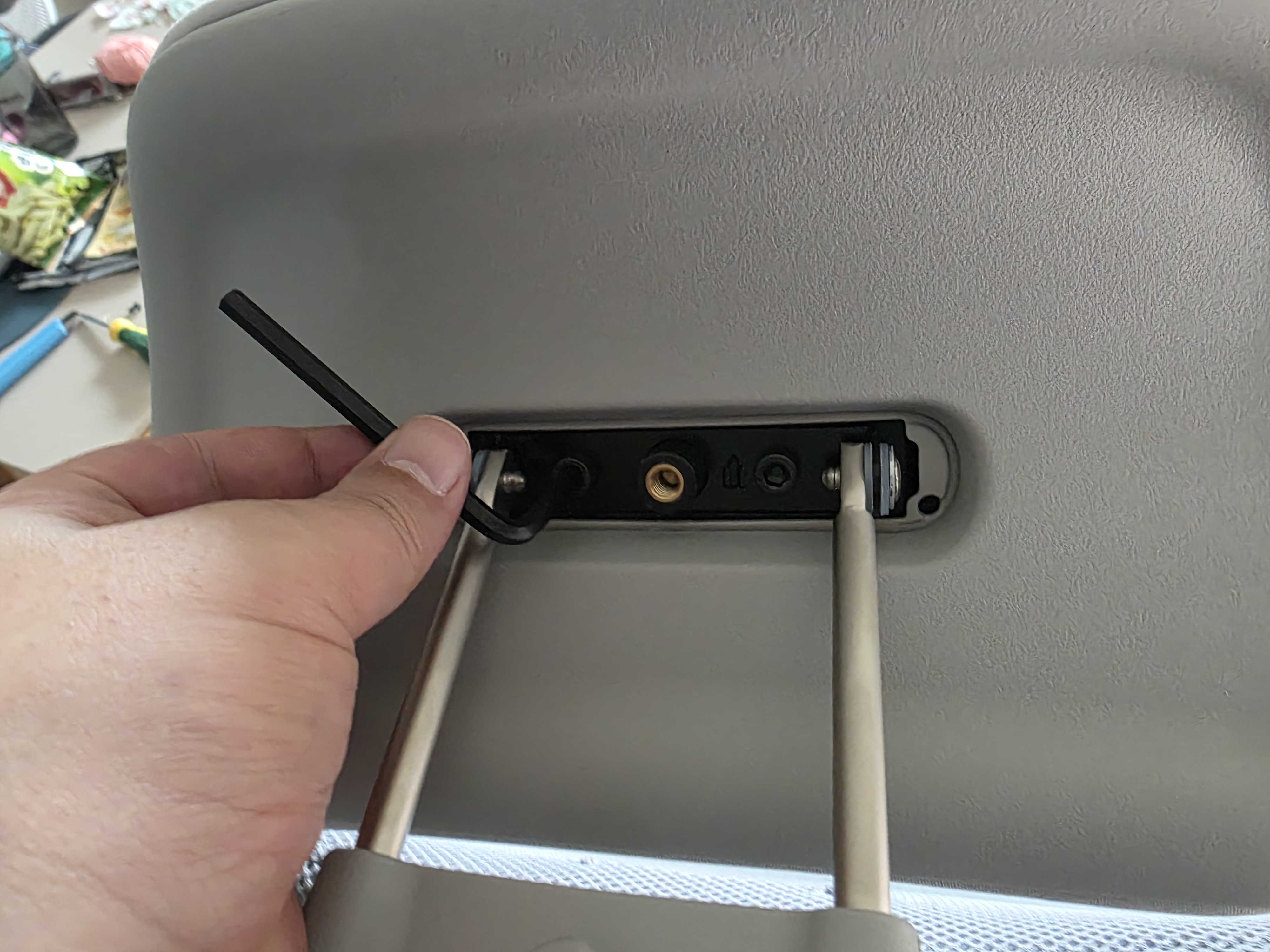 이걸 먼저 등받이 쪽에 설치한다. 동봉 된 육각 렌치로 고정하면 되고 간단히 설치 가능하다.