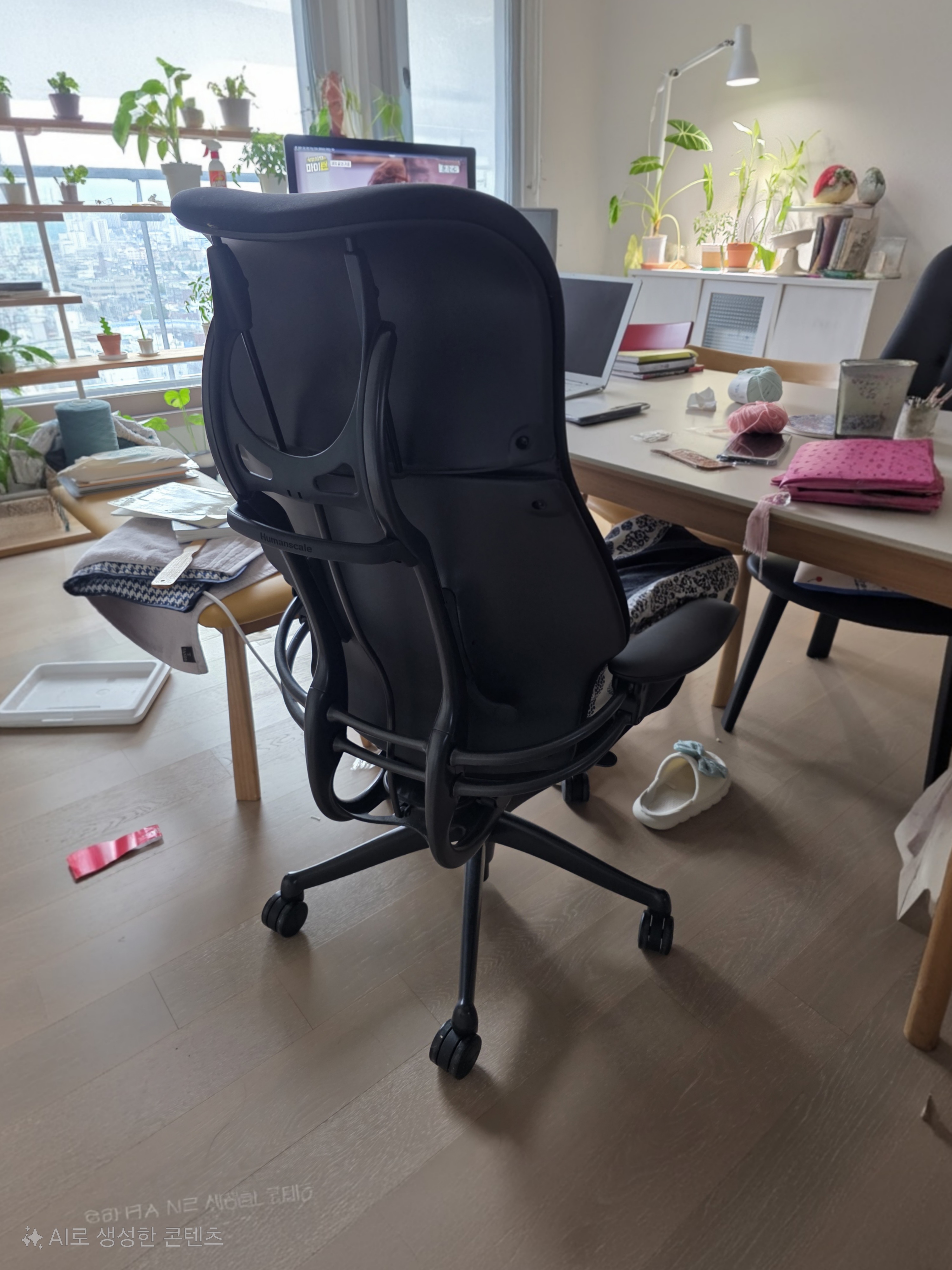 페브릭 버전(휴먼 스케일 프리덤)... 어쩌다가 와이프 거실 뜨개질 전용 의자가 되었다.