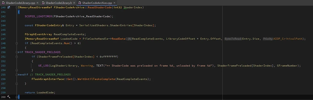 FShaderCodeArchive에는 ReadShaderCode 함수가 있어 특정 ShaderCode를 로드할 수 있습니다: