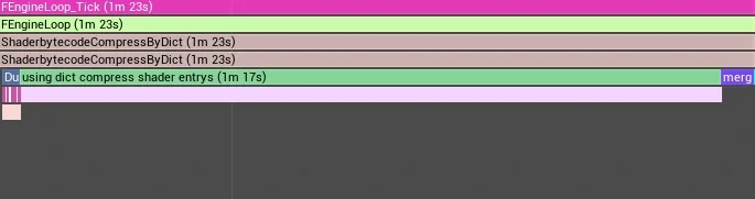 위 과정에 따르면, ShaderCode를 Dump하기 위해 엔진을 수정해야 하고, 과정이 분리되어 있어 Dump 후 zstd 프로그램을 실행해야 딕셔너리를 얻을 수 있으며, 다시 한 번 프로젝트를 Cook해야 합니다. 또한 Shader 압축을 비활성화하면 LZ4 압축 DDC Cache Miss가 발생하여 반복 Cook 시간이 크게 증가하며, 대량의 Shader가 있는 프로젝트에서는 시간이 너무 많이 소요됩니다.
