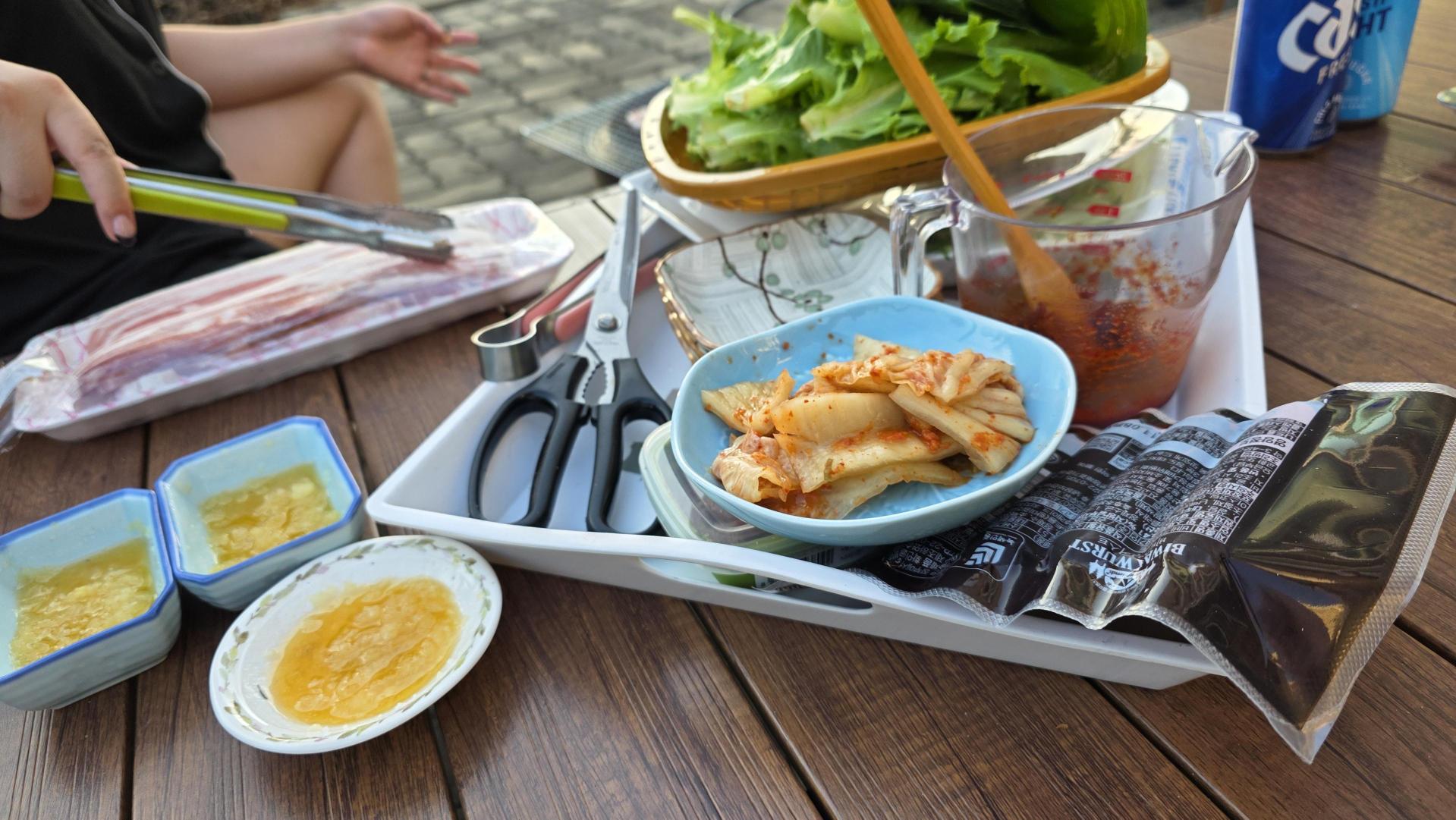 와이프는 마당에서 화로를 꺼내 고기를 구웠다. 차돌박이, 육사시미, 한우 모듬까지 준비해 와서 푸짐하게 먹었다. 비가 조금 내려서 모기가 많긴 했지만, 그 또한 시골의 맛이었다. 와이프는 비가 와도 개의치 않고 계속 고기를 굽고, 나는 불 앞에서 숯을 뒤집었다.