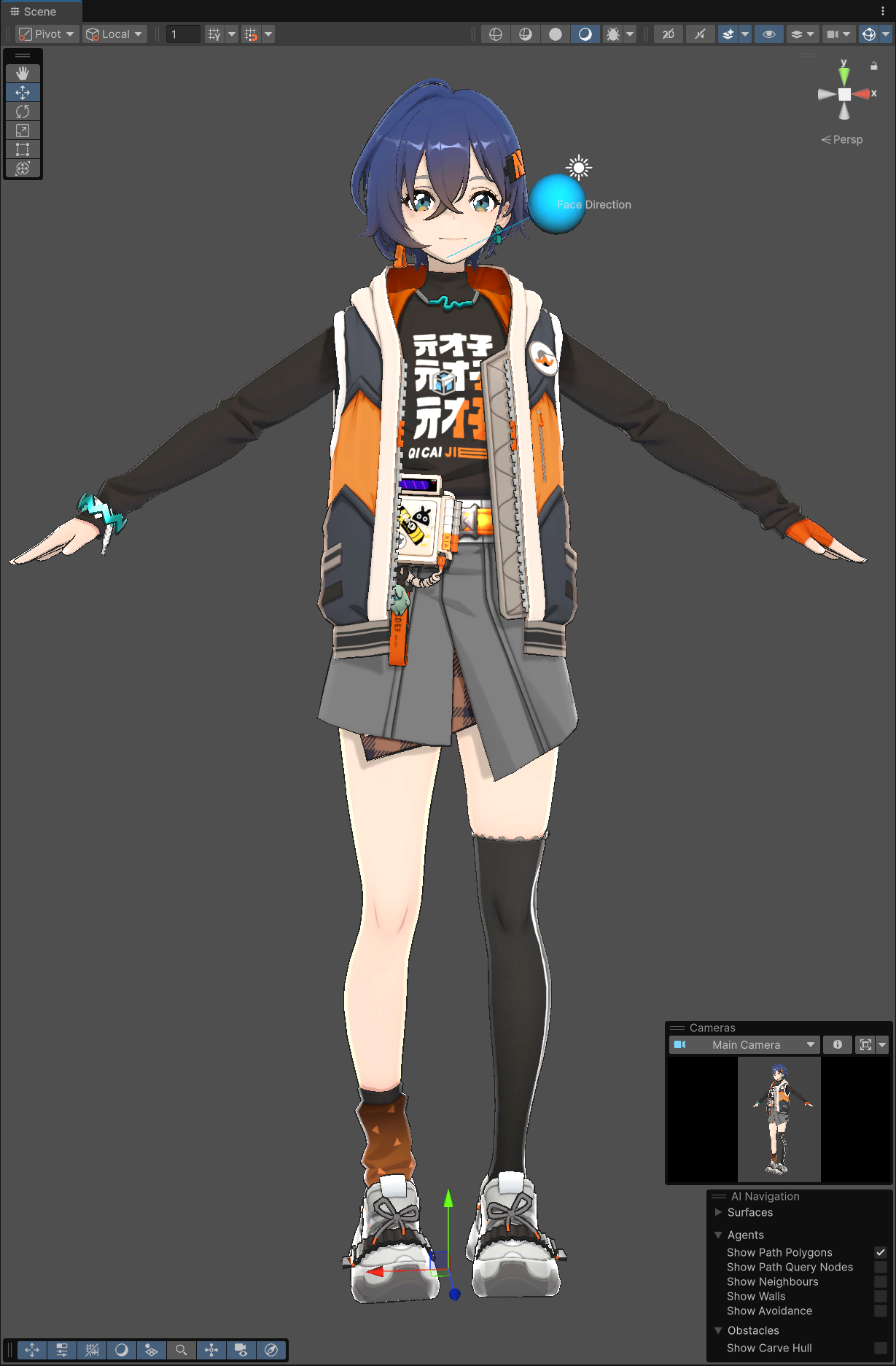 캐릭터 머티리얼을 선택하고 인스펙터에서 다음 그림과 같이 “Z” 값을 “-1”로 바꿔줘야 정상적으로 렌더링 될 것이다. 만약 독자분들 본인의 캐릭터가 바라보는 방향과 좌표계 기즈모의 “Z” 축이 일치하다면 “Face Direction”의 “Z”값을 마이너스로 바꿔주지 않아야 한다.