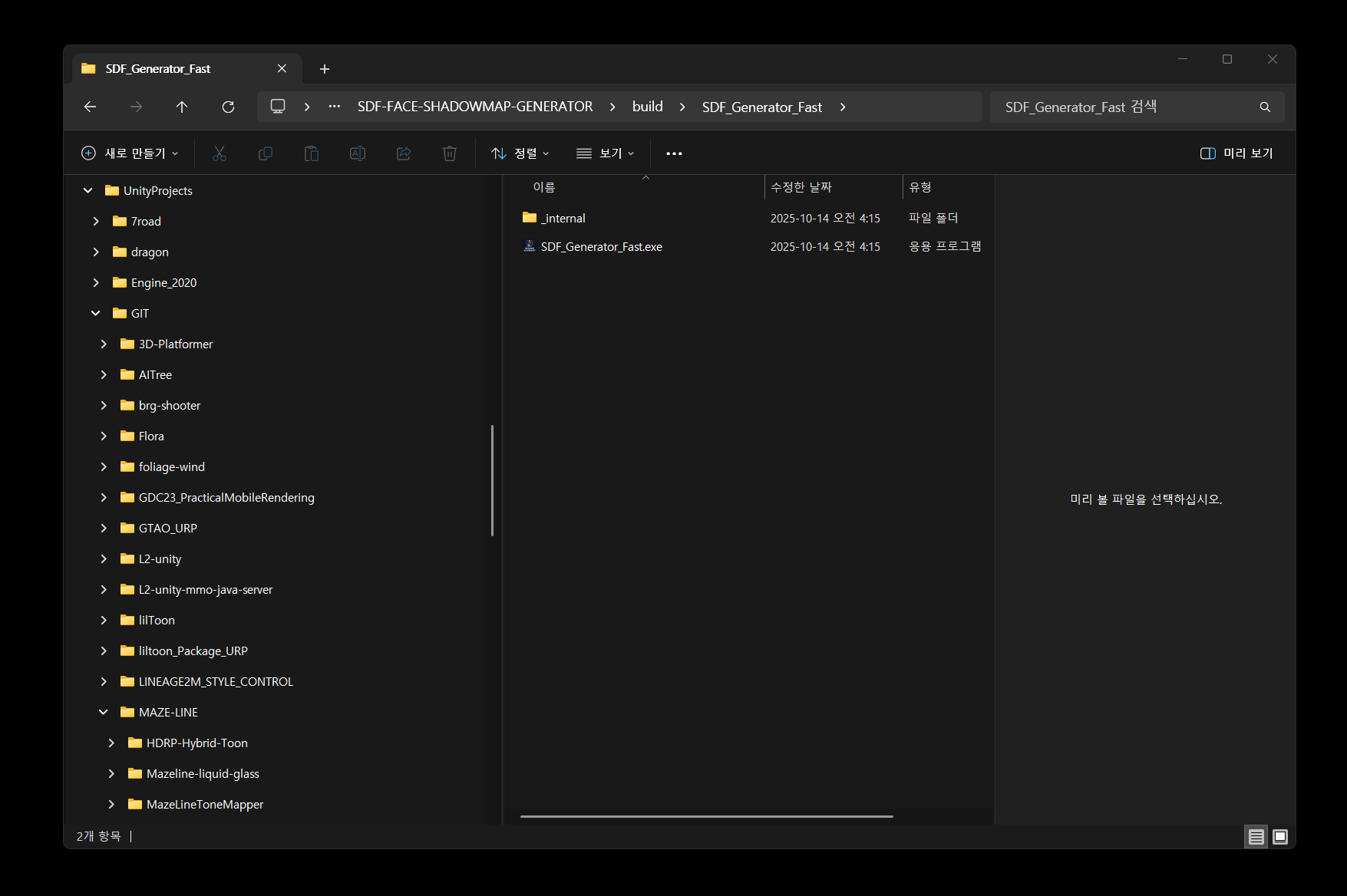 CLI 버전 https://github.com/akasaki1211/sdf_shadow_threshold_map 를 기반으로 고도화 됬으며 이미지 프로세싱에 GPU 가속 사용하고 라이브 프리뷰 업데이트 등을 아티스트에게 제공하는 방향으로 수정 중이다.