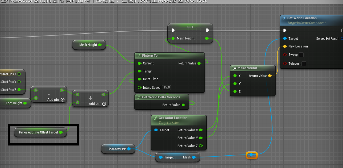 따라서 최종적으로 채택한 방법은 캐릭터의 Mesh 높이를 직접 Set하여 항상 StartPos에 유지하는 것입니다(검은색 박스는 나중에 설명).