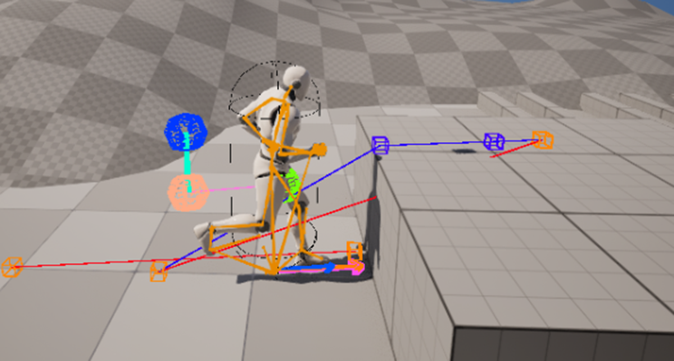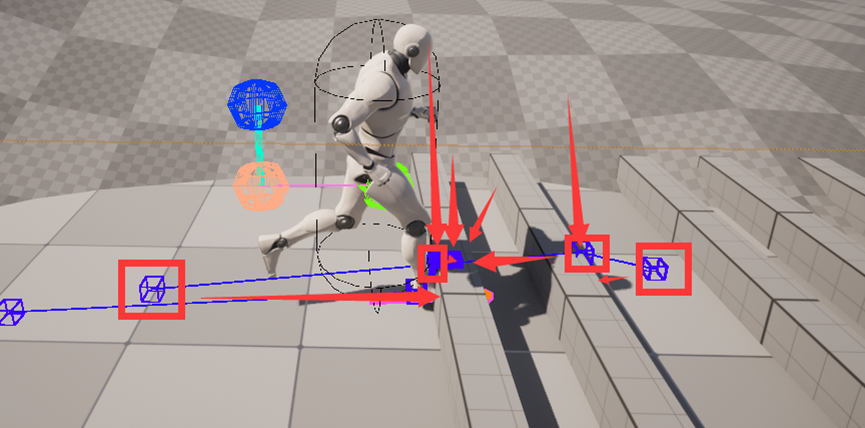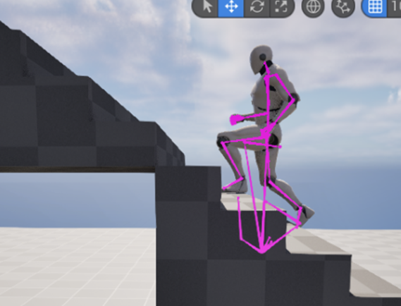 업데이트: 계단을 내려갈 때 레이캐스트 감지 높이 설정이 부족하여 충돌점을 감지하지 못하는 경우가 있어 PredictIK가 트리거되지 않습니다(시연 영상에 이 문제가 존재). 감지 범위를 늘려 해결할 수 있지만, 범위가 너무 크면 안 됩니다.