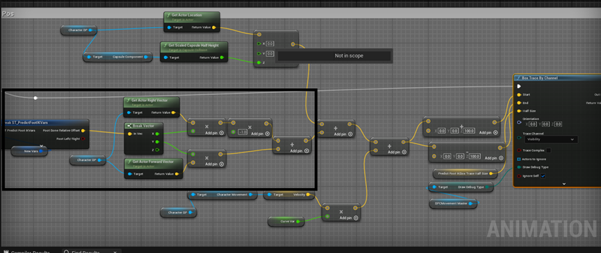 PreDictFootLocation에서는 앞서 생성한 발 착지 커브와 캐릭터의 이동 속도를 통해 착지점을 획득합니다(검은색 박스 제외).