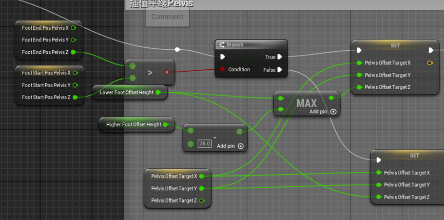 이후 오르막과 내리막의 로직을 처리하여(평지는 오르막/내리막으로 간주 가능) Pelvis Additive Offset Target을 계산합니다.